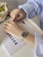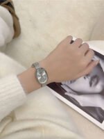 تقدم لك ساعة فضية صغيرة مستديرة تجربة فريدة من نوعها لعشاق الأناقة والتميز. تجمع هذه الساعة بين التصميم الكلاسيكي والعصري، مما يجعلها الخيار المثالي لكل سيدة تتطلع إلى إضافة لمسة من الفخامة إلى إطلالتها اليومية. بفضل مقاومتها للماء، يمكنك ارتداؤها في كافة المناسبات، سواء كنت في العمل أو في تجمع مع الأصدقاء.