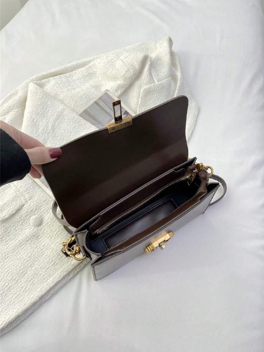 تمنحك حقيبة اليد الجلدية المستطيلة ذات التصميم العصري لمسة من الأناقة والراحة في كل استعمال. هذه الحقيبة ليست مجرد أكسسوار، بل هي تعبير عن أسلوبك الفريد وعشقك للتفاصيل الراقية في الأزياء. بفضل مشبكها الفريد ونظام الإغلاق المحكم، ستجدين أن الأمان والأناقة يجتمعان في قطعة واحدة.
