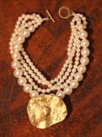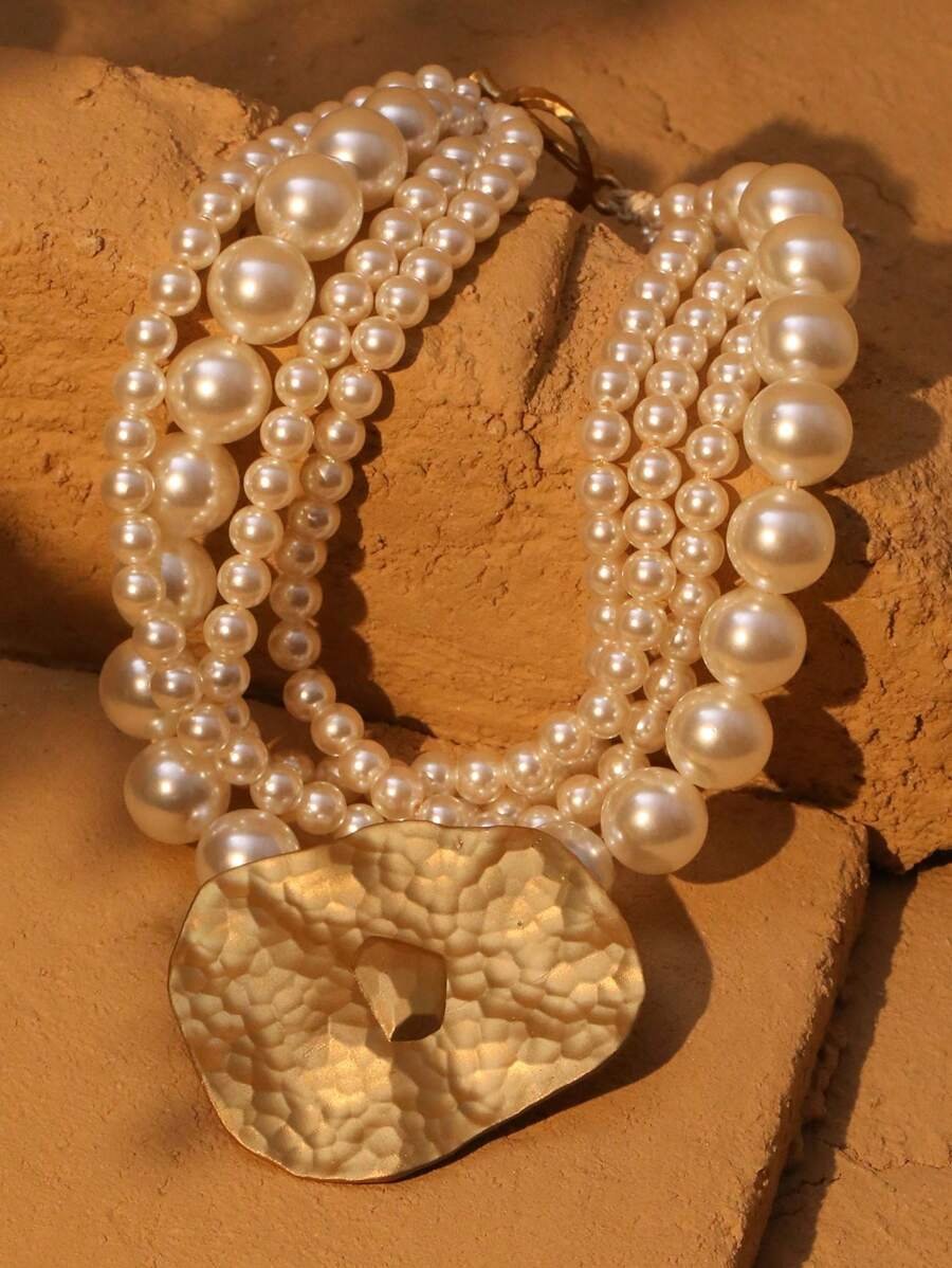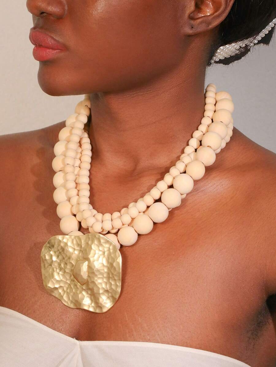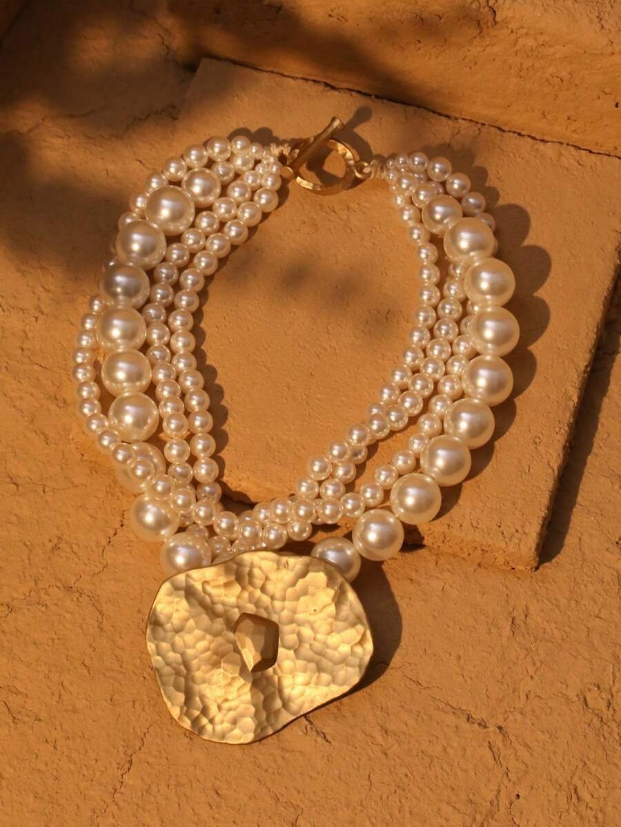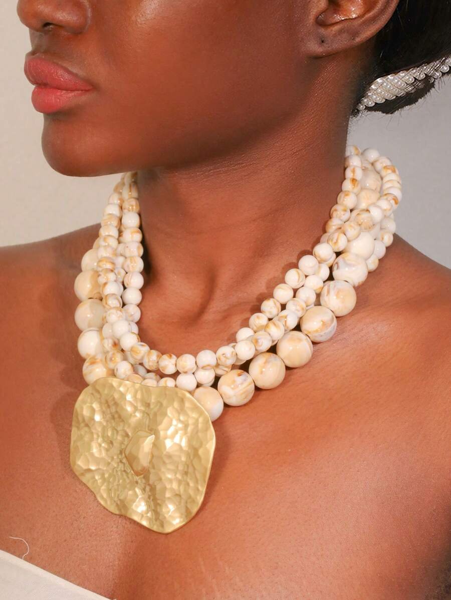 - اسم المنتج: قلادة من الخرز مزينة بدلاية ذهبية