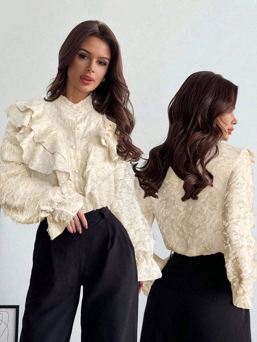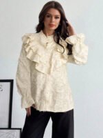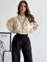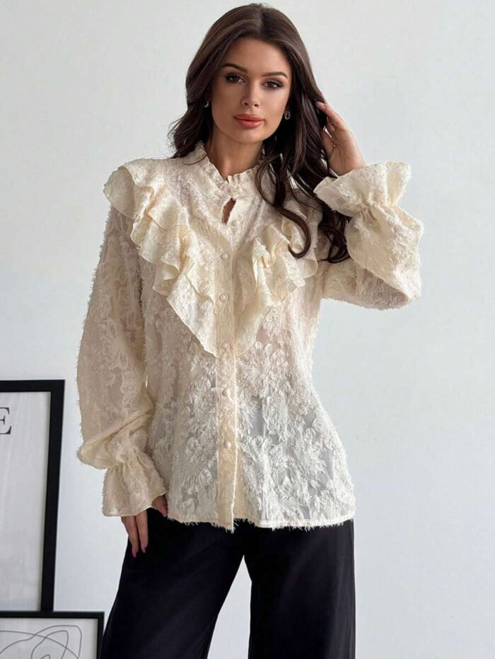 إكتشفي أناقة لا تُضاهى مع بلوزة أبيكوت الأنيقة المزودة بكشكشة، تصميم قميص يجمع بين الأناقة والراحة. مثالية لموسم المهرجانات، وخاصة مهرجان أكتوبر في ميونيخ، ستضفي هذه البلوزة لمسة من الجاذبية على إطلالتك. مع تفاصيل الدانتيل الرقيقة والكشكش الجذاب، ستشعرين بالثقة والراحة في جميع المناسبات.