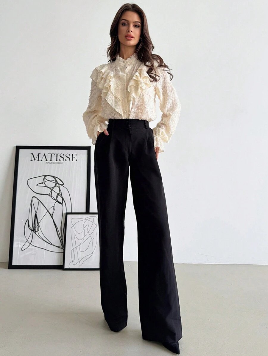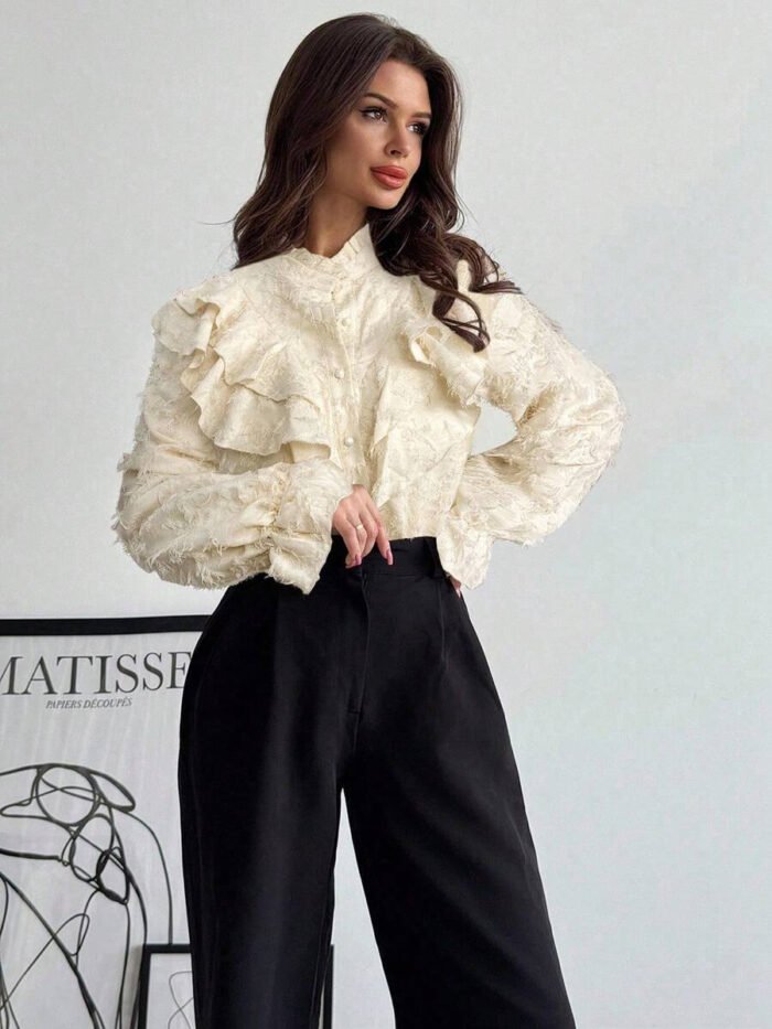 - اسم المنتج: بلوزة أبيكوت أنيقة بكشكشة