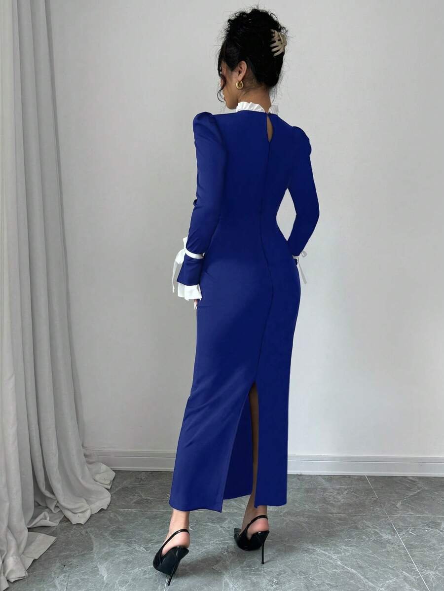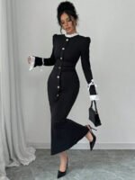 • اسم المنتج: فستان نسائي كلاسيكي طويل بياقة عالية وذيل بشكل سمكة